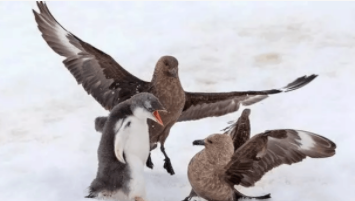 贼鸥是企鹅的大敌。在企鹅的繁殖季节,贼鸥经常出其不意地袭击企鹅的栖息地,叼食企鹅的蛋和雏企鹅,闹得鸟飞蛋打,四邻不安。