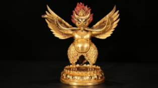 金翅鸟,也称大鹏鸟,佛鹏。大鹏鸟,是藏传佛教护法神之一。古印度金翅鸟是蛇或龙众的夙敌。被称作“大阳鸟”,誉为众鸟王。在印度、尼泊尔、斯里兰卡、缅甸、泰国等东南亚都有金翅鸟超自然的不同化身。印度教认为金翅鸟是迦叶佛和毗那达的儿子,他力大无比,凶猛无敌,只有印度教神毗湿奴能够制服金翅鸟。毗湿奴使其成为自己的坐骑。佛教界认为佛鹏来源于印度佛教的“迦楼罗”(金翅鸟王),是不空成就佛的坐骑,不空成就佛是北方的绿色佛,也是羯磨部怙主。