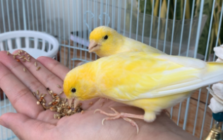 6.山东芙蓉鸟:由中国山东、扬州等地育成。体型粗短、羽毛淡黄绿色,鸣声响亮。