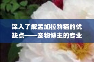 在众多迷人的猫咪品种中,孟加拉豹猫以其独特的野性美和活泼的性格脱颖而出。作为宠物博主,今天我们将深入探讨孟加拉豹猫的优缺点,帮助您决定这一品种是否适合您的家庭。