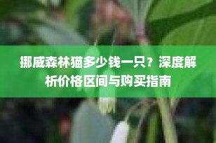 在宠物界中,挪威森林猫以其独特的外貌和迷人的个性成为了许多爱猫人士的心头好。这种源自北欧的猫咪品种不仅拥有厚重的被毛适应寒冷气候,还有着温顺而又独立的性格,使得它们成为理想的家庭伴侣。然而,对于那些打算迎接一只挪威森林猫进入家庭的人来说,了解其价格是至关重要的一步。