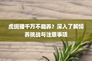 “虎斑猫千万不能养”的说法虽有一定道理,但这并不意味着所有人都不适合饲养虎斑猫。关键在于了解并准备好应对这些挑战,以及确保自己有能力给予它们所需的关爱和支持。