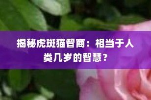 在宠物的世界里,虎斑猫以其独特的花纹和迷人的个性赢得了无数家庭的喜爱。但你知道吗?这些可爱的小家伙不仅外貌出众,还拥有相当不错的智商。那么,虎斑猫的智商究竟相当于人类几岁呢?本文将为您深入解析这一问题,并提供一些关于如何与您的虎斑猫互动以促进其智力发展的建议。