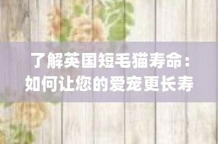 作为宠物爱好者,我们都希望我们的小伙伴能够陪伴我们尽可能长的时间。对于英国短毛猫(British Shorthair)的主人来说,了解这一品种的平均寿命以及如何通过正确的护理来延长它们的生命是非常重要的。