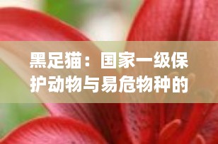 根据《国家重点保护野生动物名录》的信息,黑足猫被列为中国的国家一级保护动物。这意味着黑足猫在中国享有最高级别的法律保护,任何非法捕捉、交易或饲养的行为都将受到严厉惩罚。