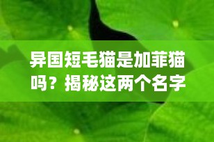 在宠物界,尤其是猫咪爱好者之间,“异国短毛猫”和“加菲猫”这两个名词常常被提及。但很多人可能并不清楚它们之间的关系。今天,我们就来深入探讨一下:异国短毛猫究竟是不是加菲猫?