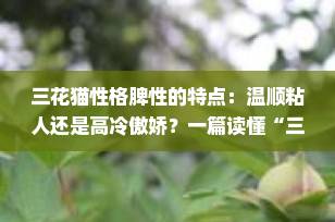 在众多猫咪花色中,三花猫(又称三色猫)以其独特的黑、红(橘)、白三色毛发组合,成为许多猫奴心中的“行走艺术品”。但你知道吗?除了颜值出众,三花猫的性格也充满了反差与魅力。它们是温顺粘人的“小棉袄”,还是独立高冷的“傲娇主子”?今天,我们就来全方位解读三花猫的性格脾性特点,帮你更深入地了解这位“猫界千面娇”。