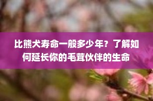 作为宠物爱好者,我们总是希望我们的爱宠能陪伴我们更长的时间。对于那些钟情于比熊犬的主人来说,了解比熊犬寿命一般多少年是至关重要的。今天,我们就来深入探讨这个问题,并分享一些能够帮助您的比熊犬过上健康长寿生活的建议。