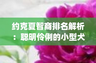 在宠物界,约克夏梗以其小巧可爱的外形和活泼的性格赢得了众多爱宠人士的喜爱。然而,对于想要饲养这种迷人小型犬的主人来说,了解约克夏智商排名同样重要。今天,我们就来深入探讨一下这个话题,并揭示约克夏犬的智慧秘密。