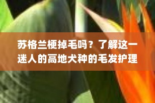 作为宠物博主,我们经常收到来自爱宠人士的各种问题。其中,“苏格兰梗掉毛吗?”是很多潜在和现有苏格兰梗主人关心的话题。今天,我们就来详细探讨一下这个问题,并分享一些关于如何照顾这种迷人的高地犬种的小贴士。
