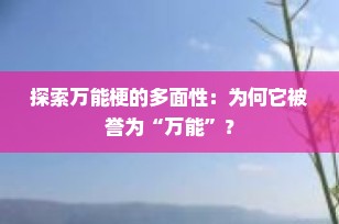 在众多宠物犬种中,有一种犬以其广泛的适应性和出色的工作能力而闻名——这就是万能梗(Airedale Terrier)。但你是否好奇过,为什么这种犬会被称作“万能梗”呢?今天,我们将深入探讨这个话题,并揭示万能梗之所以被冠以“万能”之名的原因。