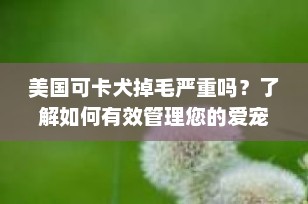 虽然美国可卡犬确实会掉毛,但通过适当的护理和管理,可以显著减轻这一问题。只要掌握了正确的方法,就能轻松享受与这位可爱伙伴共度的美好时光,而无需过于担忧掉毛带来的困扰。