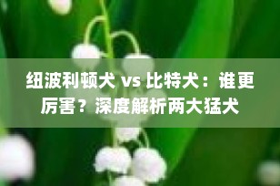 通过这篇文章,我们希望能够帮助宠物爱好者更好地了解这两种令人印象深刻的犬种,并为他们的选择提供有价值的参考。无论你最终选择了纽波利顿犬还是比特犬,请记得给予它们足够的关爱和适当的训练,这样它们才能成为最好的伴侣。