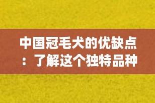 作为宠物博主,今天我们要探讨的是一个非常特别且迷人的犬种——中国冠毛犬(Chinese Crested Dog)。这种犬以其独特的外观和性格赢得了全球爱狗人士的心。让我们一起深入了解它的优缺点,帮助你决定是否它适合成为你的家庭成员。