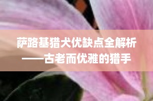 在众多犬种中,萨路基猎犬(Saluki)以其悠久的历史和高贵的气质脱颖而出。作为一位专业的宠物知识博主,今天我们将深入探讨萨路基猎犬的优点与缺点,帮助您更好地了解这一迷人的犬种。