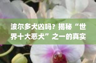 要回答“波尔多犬凶吗”,我们必须从多个维度来分析: