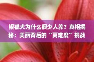 今天,作为一名专业的宠物知识博主,我将结合真实饲养经验与行业观察,深入剖析银狐犬为何越来越少人养——表面是冷门,实则是“高门槛”的体现。